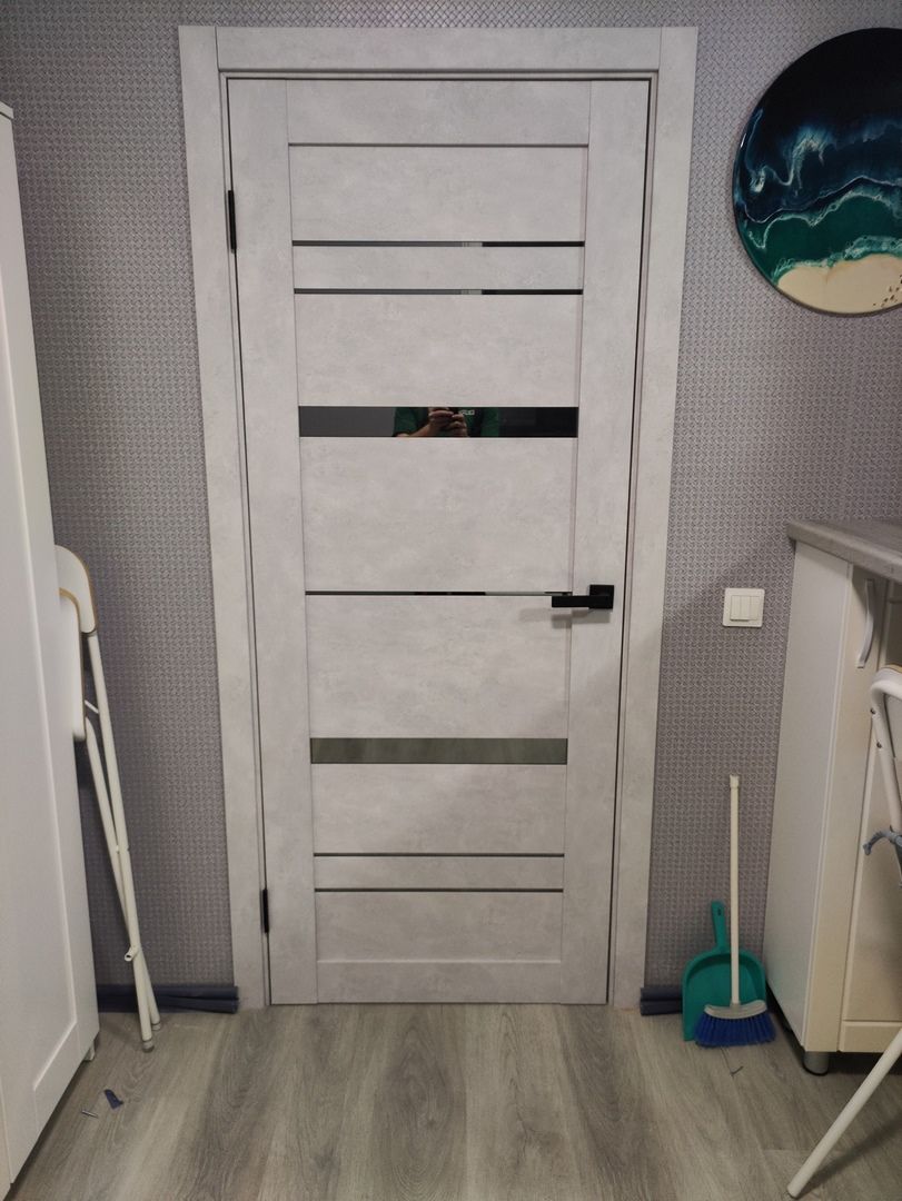 Дверь ПО Cezar 2 Бетон лайт стекло зеркало графит из Экошпона COVERFLEX (Двери Нева) в с установкой и доставкой