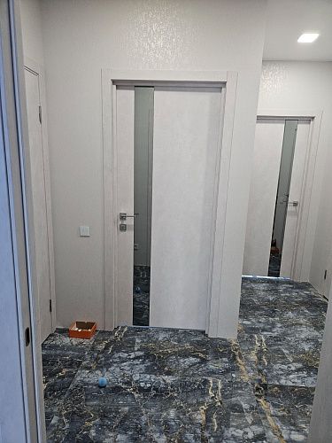 Кроме того производится врезка под скрытые петли. Такая опция помогает избежать лишних пыльных работ на адресе и сокращает время работы на монтаже. По возможности врезки в конкретную модель уточняйте у менеджеров.